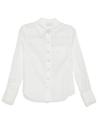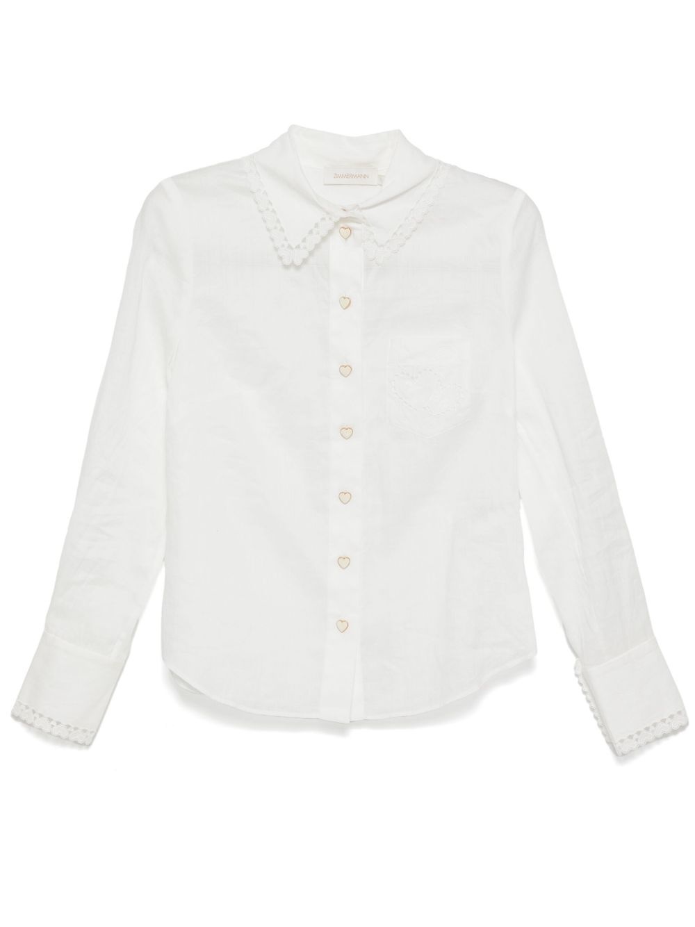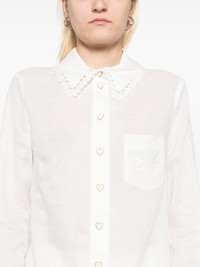 embroidered ramie shirt Highlights - White - Front button fastening - Heart motif - Chest patch pocket - Curved hem Made in Italy Composition Ramie 100% SIZE & FIT Model measurements Height 5 ft 9 in(1.76 m) Bust/Chest 31.1 in(79 cm) Hips 35.03 in(89 cm) Waist 24.4 in(62 cm) FittingInformation Designed to be unstructured, offering a loose fit throughout Made from a lightweight non-stretch fabric