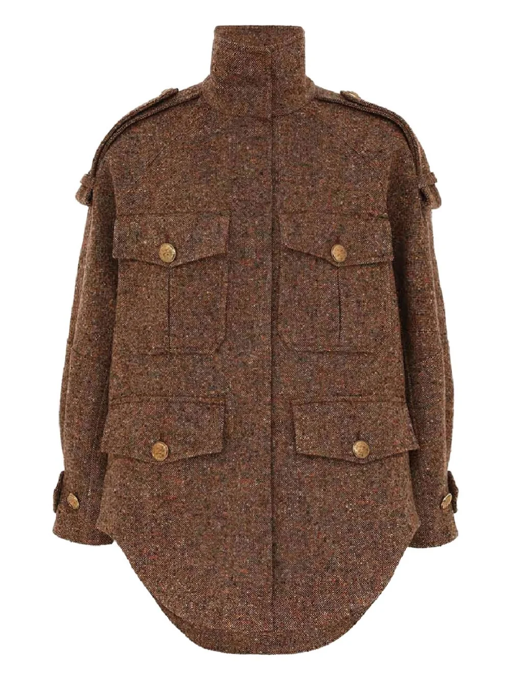 epaulettes jacket Highlights - Brown - Tweed - Epaulettes - Flap pockets - Buttoned cuffs - Snap fastening Imported Composition Wool 100% Washing instructions Read Manufacturer Guidelines