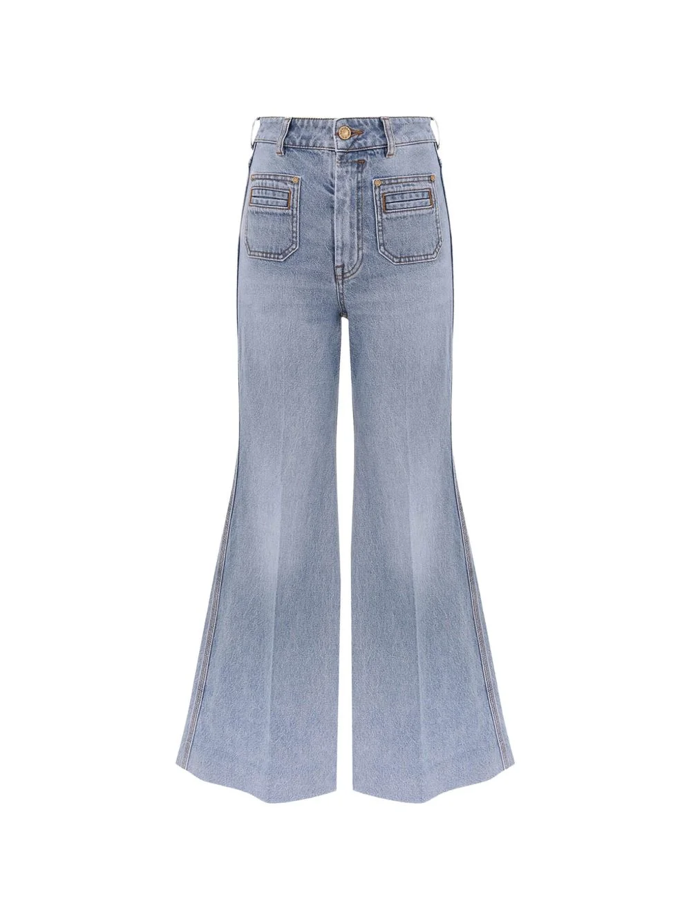 flared jeans Highlights - Blue - Flared leg - Belt loops - High waist - Five-pocket style Imported Composition Cotton 99%, Elastane 1% Washing instructions Machine Wash