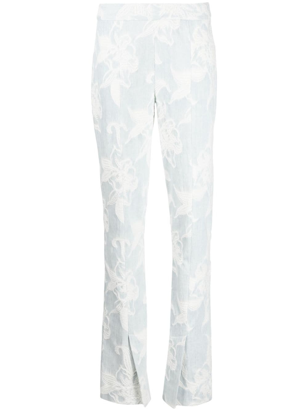 floral-embroidery straight-leg jeans