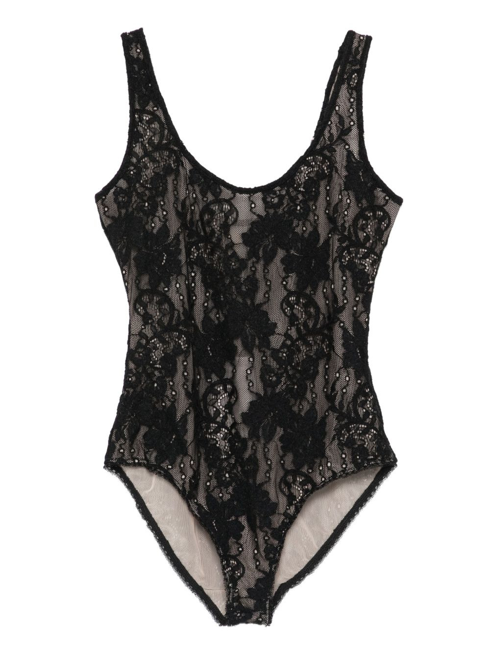 floral-lace bodysuit Highlights - Black - Floral lace - Sleeveless - Scoop neck - Just a reminder that this piece must be tried on over your own garments. Imported Composition Outer: Polyamide 90%, Elastane 10% Lining: Polyester 81%, Elastane 19% SIZE & FIT Model measurements Height 5 ft 11 in(1.8 m) Bust/Chest 32.67 in(83 cm) Hips 36.22 in(92 cm) Waist 24.4 in(62 cm) Washing instructions Hand Wash