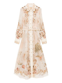 floral-print buttoned midi dress Highlights - Cream - Map print - Button fastening - Long sleeves - Belted waist - A-line skirt Imported Composition Linen/Flax 100%, Silk Organza 100% SIZE & FIT Model measurements Height 5 ft 11 in(1.8 m) Bust/Chest 31.49 in(80 cm) Hips 36.61 in(93 cm) Waist 24.4 in(62 cm) Washing instructions Read Manufacturer Guidelines