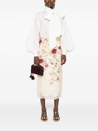 floral-print lace-trimmed skirt Highlights - Cream - Floral print - Pencil silhouette - Lace trim - Scalloped hem - Linen Imported Composition Outer: Linen/Flax 100%, Polyester 100% Lining: Cotton 100% SIZE & FIT Model measurements Height 5 ft 11 in(1.8 m) Bust/Chest 32.67 in(83 cm) Hips 36.22 in(92 cm) Waist 24.4 in(62 cm) Washing instructions Dry Clean Only