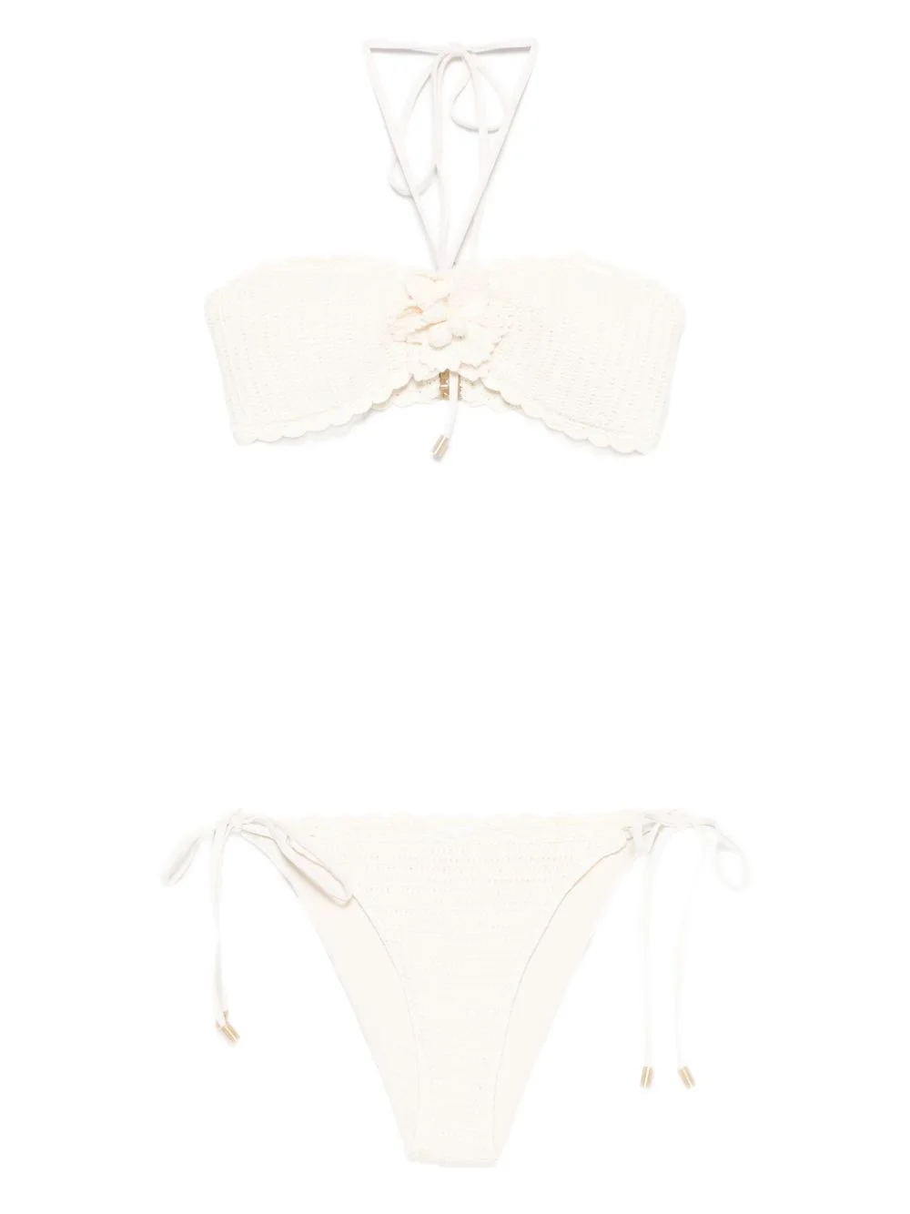 flower-motif crochet-knit bikini Highlights - Cream - Flower detail - Crochet knit - Tie fastening - Scalloped trim - Gold-tone hardware Imported Composition Outer: Cotton 100% Lining: Recycled Nylon 92%, Elastane 8% Washing instructions Hand Wash