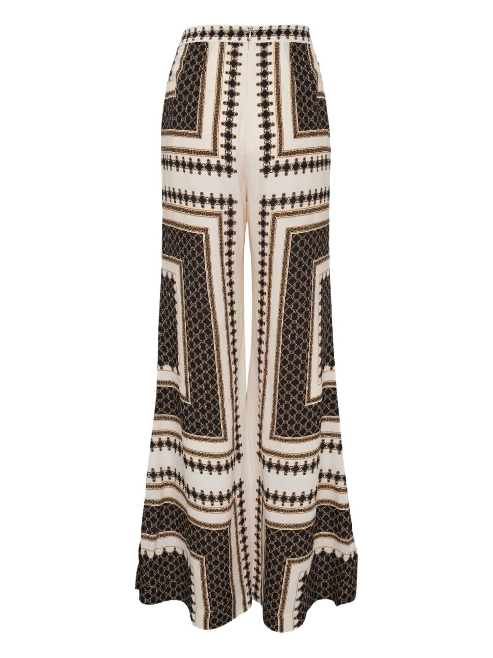 geometric-print trousers Highlights - Beige - Geometric print - Concealed zip fastening Imported Composition Outer: Viscose 55%, Silk 45% Lining: Viscose 100% Washing instructions Read Manufacturer Guidelines