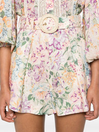 Halliday Tuck belted linen shorts Highlights - Beige/multicolour - Linen/flax - Multi watercolour floral print - Pleat detailing - High waist - Detachable belt - Belt loops - Concealed rear zip fastening - Two side slit pockets - Straight leg - Thigh-length Made in United States Composition Lining: Cotton 100% Outer: Linen/Flax 100% SIZE & FIT Model measurements Height 5 ft 10 in(1.77 m) Bust/Chest 33.07 in(84 cm) Hips 37 in(94 cm) Waist 24.8 in(63 cm) Measurement FRONT RISE 14.96 in(38 cm) HIPS 37.79 in(96 cm) WAIST 28.34 in(72 cm) FittingInformation Designed for a loose fit, offering comfort and movement when worn The belt offers adjustability for fitted preferences Made from a midweight non-stretch fabric This piece fits true to size – take your usual size