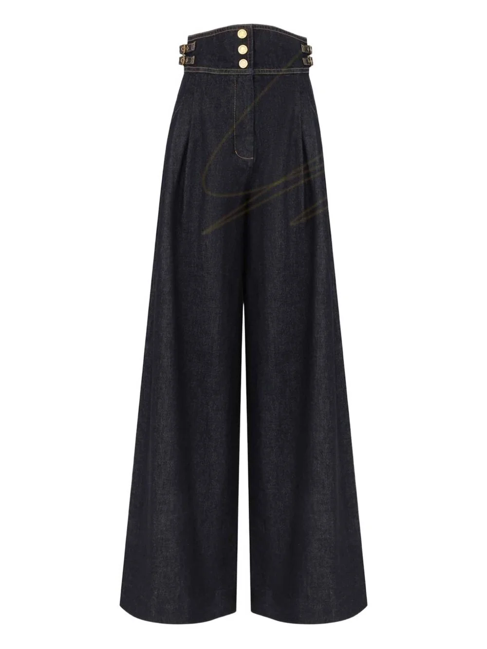 high-waist rebellion flared jeans Highlights - Blue - Front pockets - High waist loops buckles - Pleats at the centre front - Cotton denim - Flared hem - Front button closure Made in Italy Composition Cotton 75%, Viscose 25% Washing instructions Read Manufacturer Guidelines