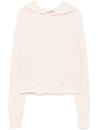hooded jumper Highlights - Macadamia beige - Knitted construction - Drawstring hood - Long sleeves - Ribbed cuffs and hem Imported Composition Wool 90%, Cashmere 10% SIZE & FIT Model measurements Height 5 ft 9 in(1.76 m) Bust/Chest 31.1 in(79 cm) Hips 35.03 in(89 cm) Waist 24.4 in(62 cm) FittingInformation Designed for a slim fit that sits just away from the body offering a close yet comfortable fit The ribbed hem offers a close, comfortable fit Made with a midweight knit, this piece offers some stretch