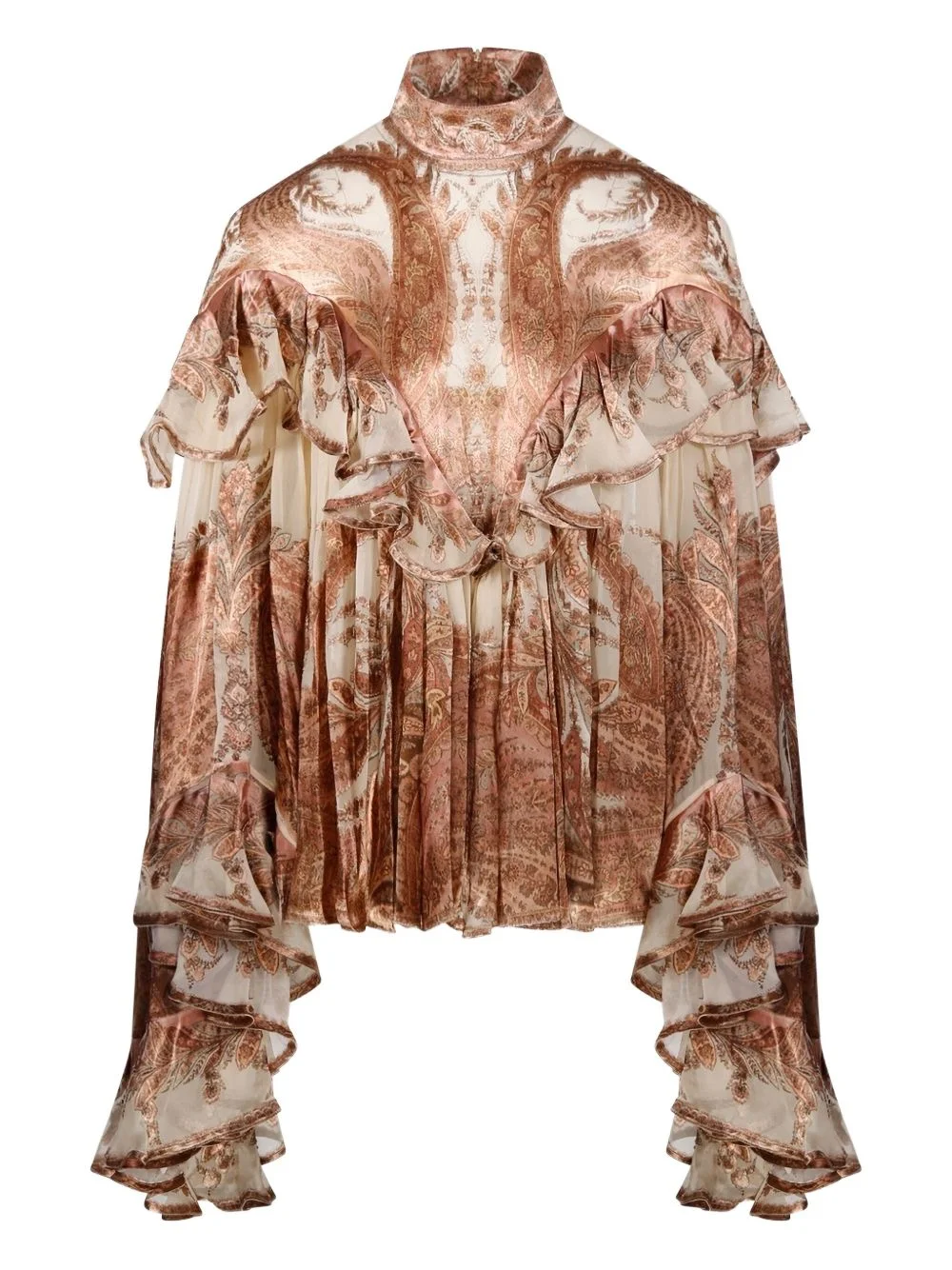 Hypnotic blouse Highlights - Cream - Paisley pattern - High neck - Long sleeves - Ruffle detailing - Concealed rear zip fastening Imported Composition Viscose 76%, Silk 24% Washing instructions Read Manufacturer Guidelines
