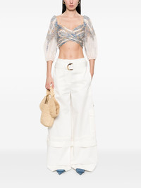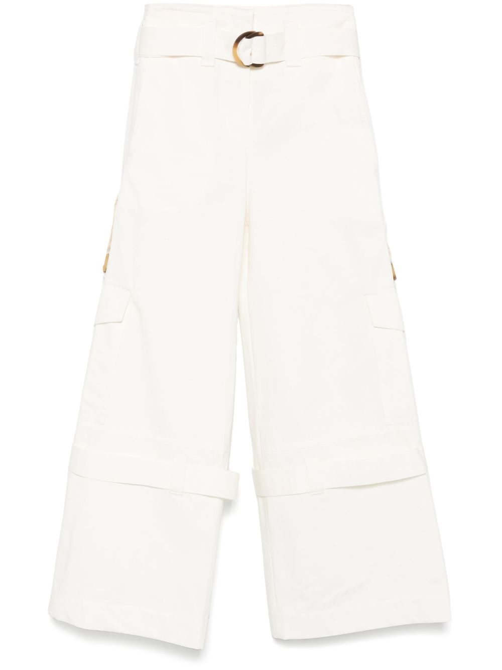 Illuminate cargo pants Highlights - White - Concealed front button, hook and zip fastening - Detachable and adjustable waist belt - Two side inset pockets - Two rear flap pockets Made in France Composition Cotton 100% SIZE & FIT Model measurements Height 5 ft 10 in(1.78 m) Bust/Chest 33.46 in(85 cm) Hips 36.22 in(92 cm) Waist 23.22 in(59 cm) FittingInformation Designed with a wide-leg cut, these trousers allow for a close fit at the waist and offer a loose and roomy fit over the leg The belt offers adjustability for fitted preferences Made from a midweight non-stretch fabric Washing instructions Dry Clean Only