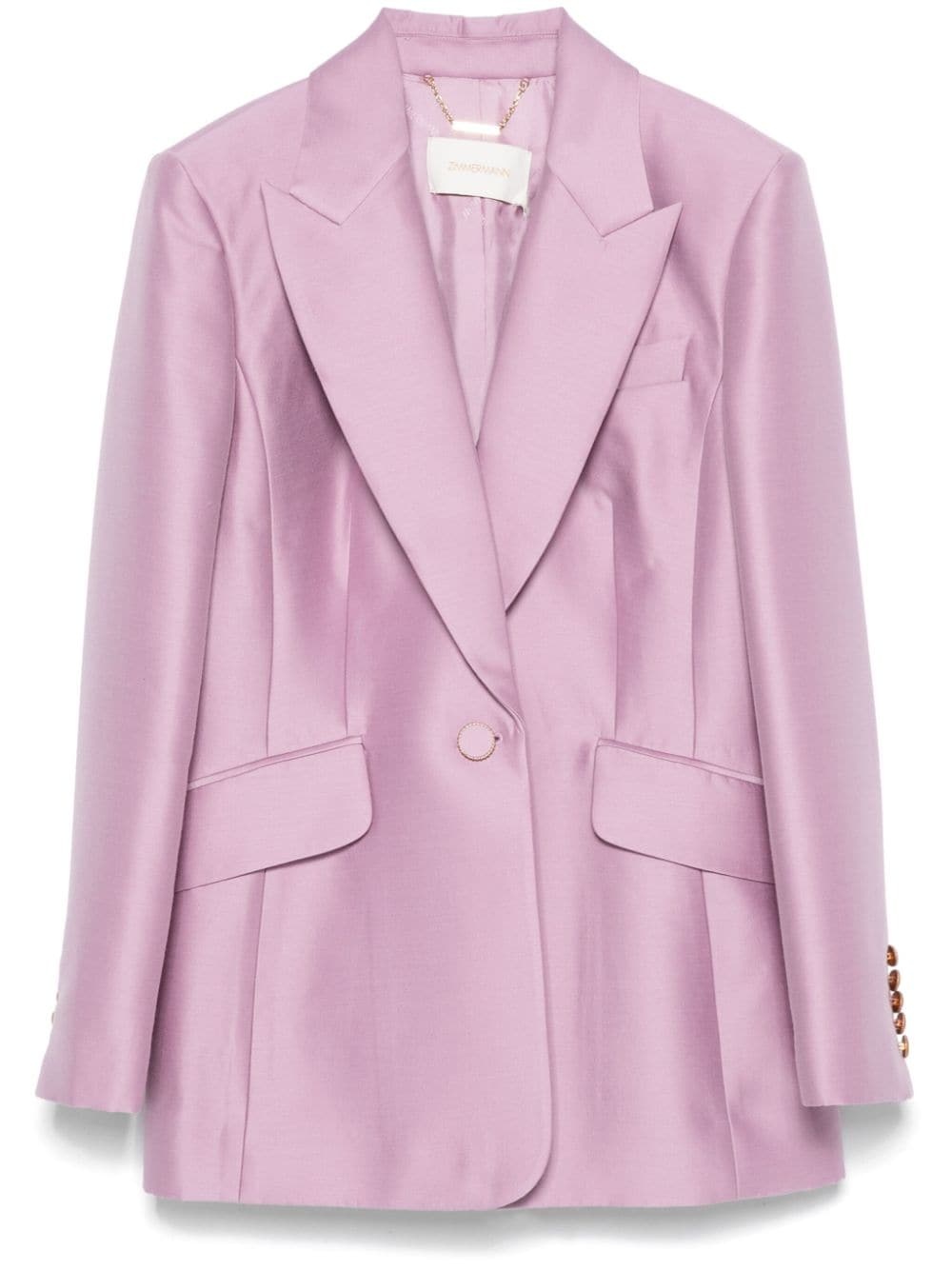 Illustration blazer Highlights - Lilac purple - Wool-silk blend - Front button fastening - Peak lapels - Shoulder pads - Long sleeves - Faux buttoned cuffs - Chest welt pocket - Two front flap pockets - Logo-jacquard lining Imported Composition Outer: Wool 92%, Silk 8% Lining: Viscose 75%, Silk 25% SIZE & FIT Model measurements Height 5 ft 10 in(1.77 m) Bust/Chest 33.07 in(84 cm) Hips 37 in(94 cm) Waist 24.8 in(63 cm) FittingInformation Designed for a slim fit that sits just away from the body offering a close yet comfortable fit The internal shoulder pads offer a structured shape Made from a midweight non-stretch fabric
