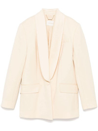 Illustration blazer Highlights - Butter yellow - Wool blend - Front button fastening - Shawl lapels - Shoulder pads - Long sleeves - Faux buttoned cuffs - Two side flap pockets - American rear vent - Logo-jacquard lining Imported Composition Outer: Wool 51%, Polyester 49% Lining: Viscose 75%, Silk 25% Washing instructions Dry Clean Only
