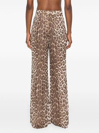 Illustration flared trousers Highlights - Beige/chocolate brown - Crepe texture - Leopard print - Fitted waistline - Elasticated waistband - Flared hem Imported Composition Lining: Viscose 100% Outer: Viscose 100% SIZE & FIT FittingInformation Designed with a wide-leg cut, these trousers allow for a close fit at the waist and offer a loose and roomy fit over the leg Made from a lightweight non-stretch fabric This piece fits small – take one size up