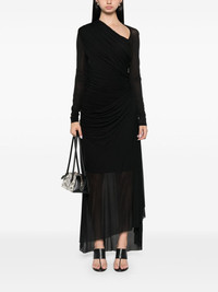 Illustration Gathered midi dress Highlights - Black - Jersey texture - Semi-sheer panels - Panelled design - Gathered detailing - Concealed side zip fastening - Asymmetric neck - Long sleeves - Ruched detailing - Draped detailing - Unlined - Asymmetric hem - Mid-length Imported Composition Viscose 100% Washing instructions Dry Clean Only