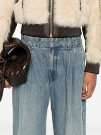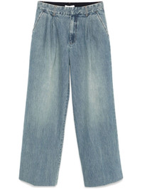 Illustration jeans Highlights - Blue - Cotton - Denim - Stonewashed - Concealed front button, hook and zip fastening - Belt loops - Pleat detailing - Two side slash pockets - Pressed crease - Two rear welt pockets - Wide leg Imported Composition Lining: Polyester 86%, Cotton 14% Outer: Cotton 100% SIZE & FIT Model measurements Height 5 ft 11 in(1.8 m) Bust/Chest 32.67 in(83 cm) Hips 35.03 in(89 cm) Waist 25.19 in(64 cm) FittingInformation Designed with a wide-leg cut, these trousers allow for a close fit at the waist and offer a loose and roomy fit over the leg Sturdy and hard-wearing, this denim piece offers no stretch