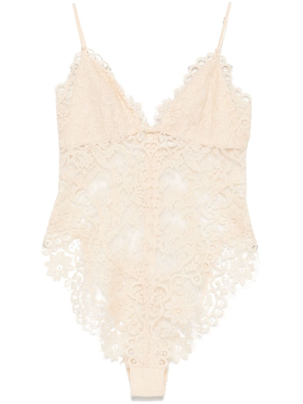 Illustration lace bodysuit Highlights - Ecru - Floral lace design - Semi-sheer construction - Concealed rear zip fastening - Scallop edge - Sweetheart neck - Dart detailing - Non-wired - Adjustable spaghetti straps - High cut - Just a reminder that this piece must be tried on over your own garments. Imported Composition Lining: Viscose 100% Outer: Polyamide 56%, Cotton 44% SIZE & FIT Model measurements Height 5 ft 9 in(1.75 m) Bust/Chest 31.88 in(81 cm) Hips 34.64 in(88 cm) Waist 24.01 in(61 cm) Measurement LENGTH 20.47 in(52 cm) WAIST 29.92 in(76 cm) BUST 32.28 in(82 cm) FittingInformation Designed for a slim fit that sits just away from the body offering a close yet comfortable fit The adjustable shoulder straps allow for a preferred fit when worn Made from a lightweight non-stretch fabric, this piece offers minimal elasticity when worn Washing instructions Dry Clean Only