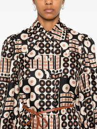 Illustration midi dress Highlights - Light brown/multicolour - Silk - Twill weave - Satin finish - Front button fastening - All-over geometric print - Pointed flat collar - Long puff sleeves with elasticated cuffs - Belt loops - Detachable and adjustable waist belt - Box-pleat detail to the back - Unlined - Straight hem - Calf-length Imported Composition Silk 100% SIZE & FIT Model measurements Height 5 ft 10 in(1.77 m) Bust/Chest 33.07 in(84 cm) Hips 37 in(94 cm) Waist 24.8 in(63 cm) FittingInformation Designed for a relaxed fit, this piece allows for comfort and movement when worn The adjustable tie waist gives a more adaptable and personalised fit Made from a lightweight non-stretch fabric