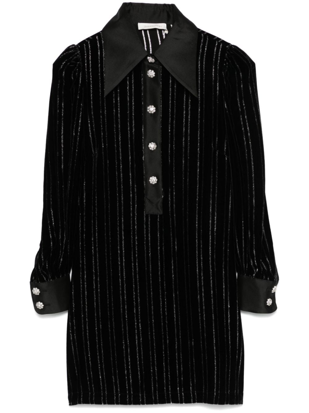 Illustration mini dress Highlights - Black/silver-tone - Metallic threading - Velvet - Vertical stripe pattern - Pointed flat collar - Shoulder pads - Long sleeves - Buttoned cuffs - Front button placket - Crystal-embellished buttons - Straight hem Imported Composition Lining: Viscose 100% Outer: Viscose 72%, Silk 21%, Metallic Fibre 7% SIZE & FIT Model measurements Height 5 ft 10 in(1.78 m) Bust/Chest 33.85 in(86 cm) Hips 36.61 in(93 cm) Waist 26.77 in(68 cm) Measurement SLEEVE LENGTH 28.34 in(72 cm) HIPS 41.73 in(106 cm) LENGTH 34.64 in(88 cm) WAIST 37 in(94 cm) BUST 37 in(94 cm) Shoulder Width 13.38 in(34 cm) FittingInformation Designed for a relaxed fit, this piece allows for comfort and movement when worn Made from a midweight non-stretch fabric Washing instructions Dry Clean Only