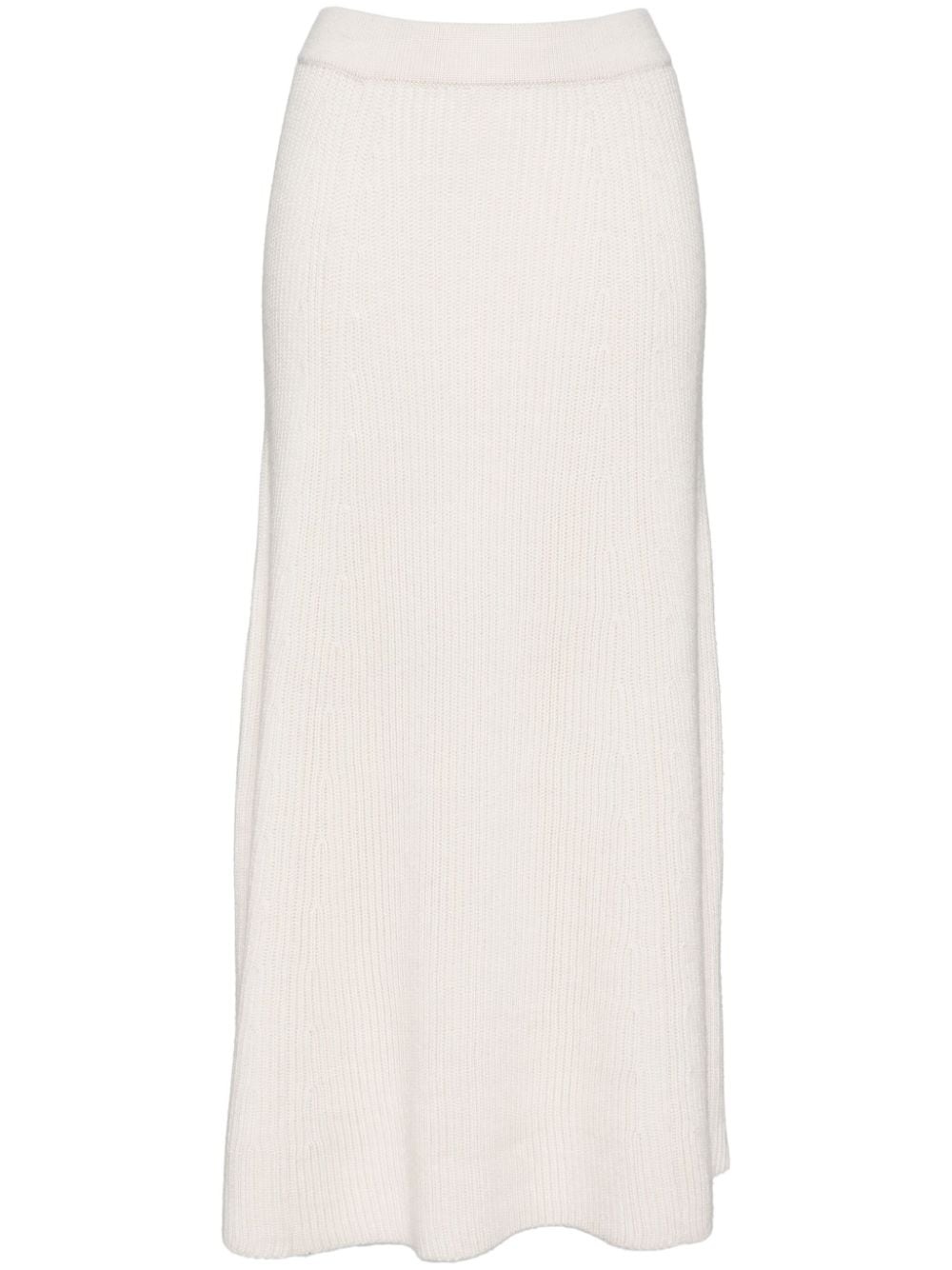 illustration paneled rib skirt Highlights - Crewm white - Wool - Ribbed knit - Elasticated waistband - Flared skirt - Straight hem - Mid-calf length - Slip-on style Imported Composition Wool 100% SIZE & FIT Model measurements Height 5 ft 9 in(1.76 m) Bust/Chest 31.1 in(79 cm) Hips 35.03 in(89 cm) Waist 24.4 in(62 cm) FittingInformation This midi-length skirt is intended to be worn high on the waist The elasticated waist allows for a comfortable fit Made with a midweight knit, this piece offers some stretch