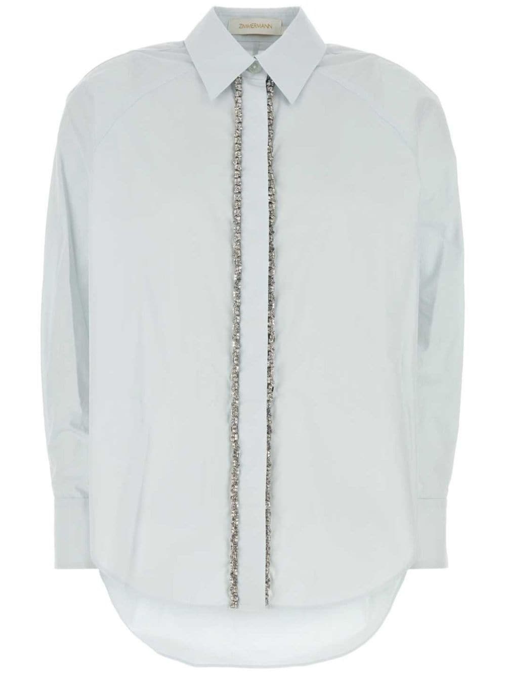 Illustration shirt Highlights - Pastel blue - Cotton - Poplin texture - Concealed front button fastening - Classic collar - Crystal embellishment - Long raglan sleeves - Buttoned cuffs - Curved hem Imported Composition Cotton 100%
