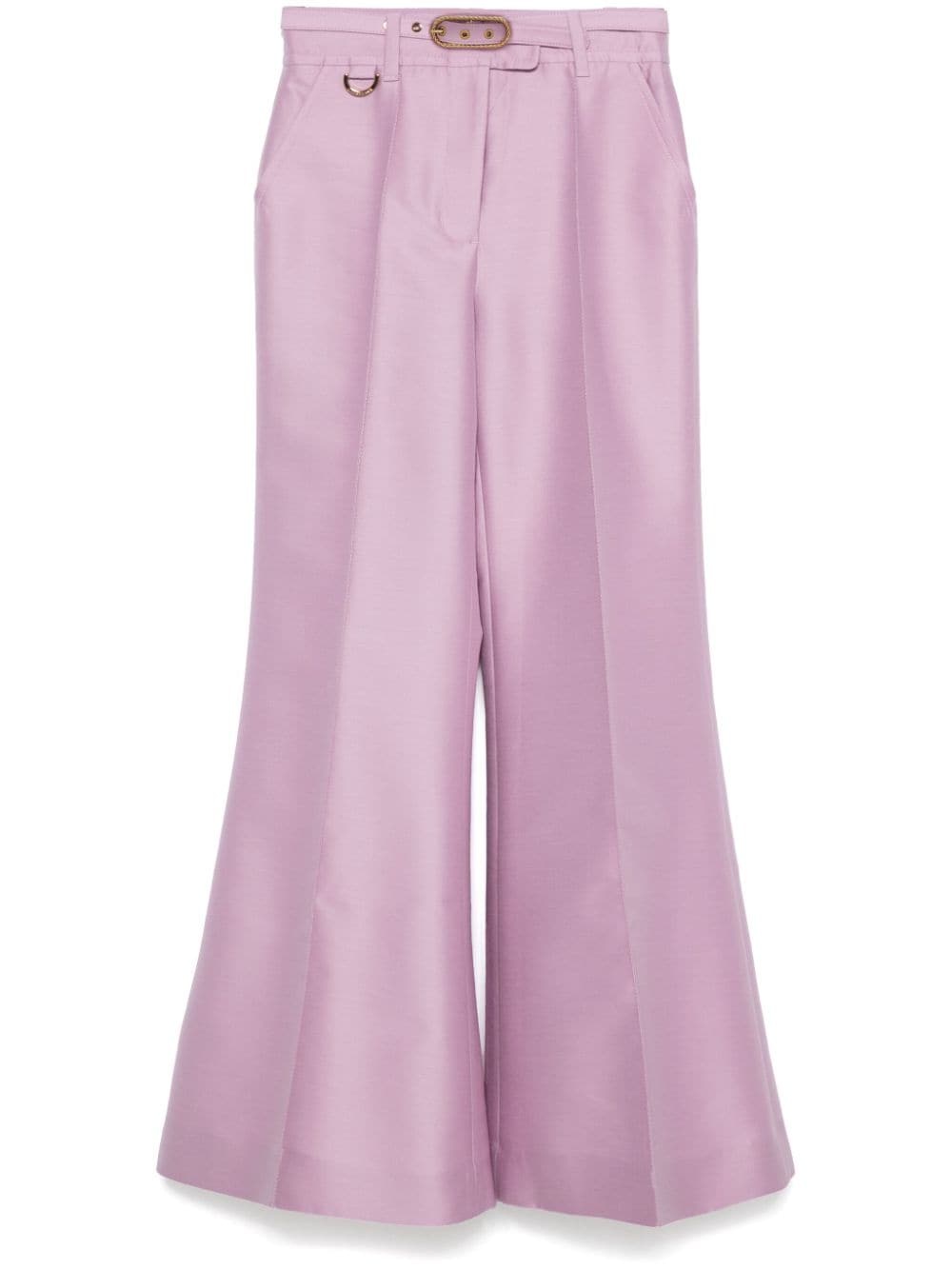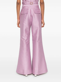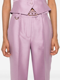 Illustration trousers Highlights - Lilac purple - Wool-silk blend - Concealed front button, hook and zip fastening - Buckle fastening - Belt loops - Adjustable detachable shoulder strap - Pintuck detailing - Two diagonal pockets to the sides - Two rear flap pockets - Flared Imported Composition Outer: Wool 92%, Silk 8% Lining: Viscose 75%, Polyester 55%, Cotton 45%, Silk 25% SIZE & FIT Model measurements Height 5 ft 10 in(1.77 m) Bust/Chest 33.07 in(84 cm) Hips 37 in(94 cm) Waist 24.8 in(63 cm) FittingInformation Designed with a flared hem, these trousers allow for a close fit at the waist with a slim fit over the leg and widening towards the hem Made from a midweight non-stretch fabric