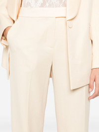 Illustration trousers Highlights - Butter yellow - Wool blend - Concealed front button, hook and zip fastening - Two diagonal pockets to the sides - Two rear welt pockets - Pressed crease - Straight leg Imported Composition Lining: Viscose 75%, Silk 25% Outer: Wool 51%, Polyester 49% Washing instructions Dry Clean Only