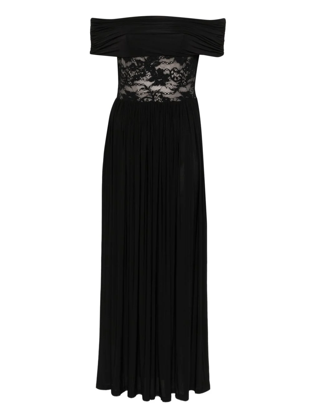 Off-The-Shoulder Lace-Detailed Jersey Maxi Dress black