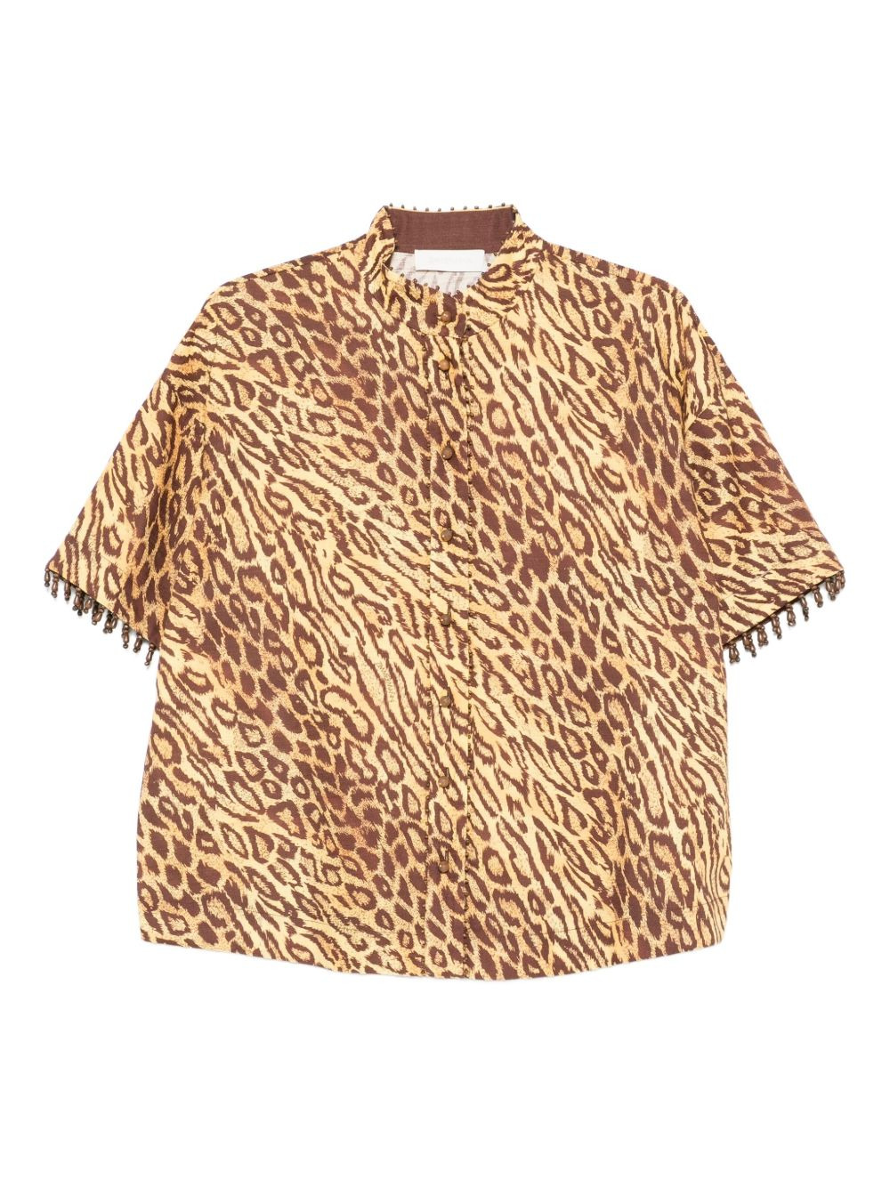 Coco bead-embellished leopard-print cotton shirt Leopard print