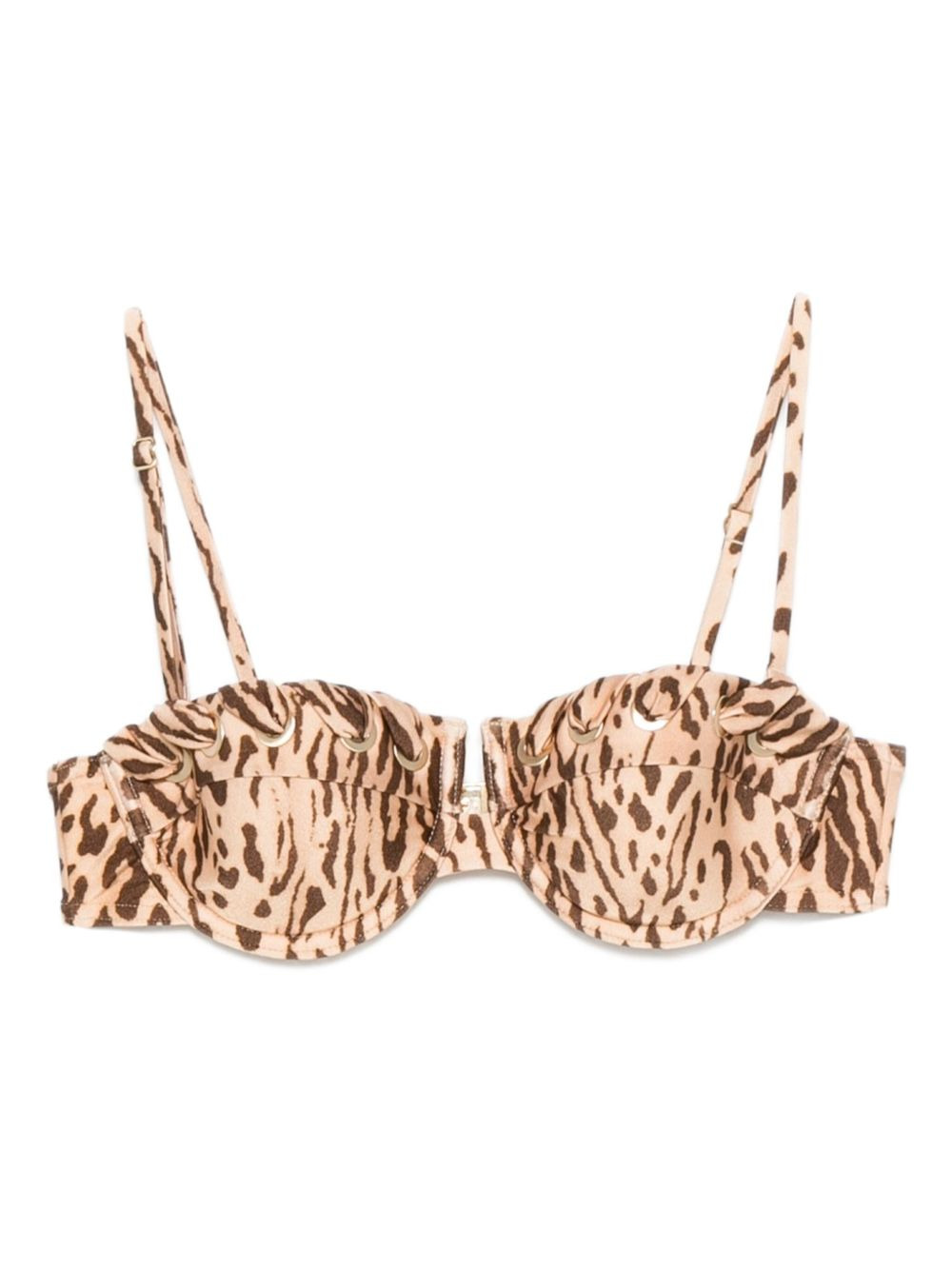 leopard-print bikini top Highlights - Beige - Underwired cups - Adjustable straps - Clasp fastening - Be mindful to try on swimwear over your own garments. Imported Composition Outer: Polyamide 80%, Elastane 20% Lining: Recycled Polyamide 92%, Elastane 8% Washing instructions Hand Wash