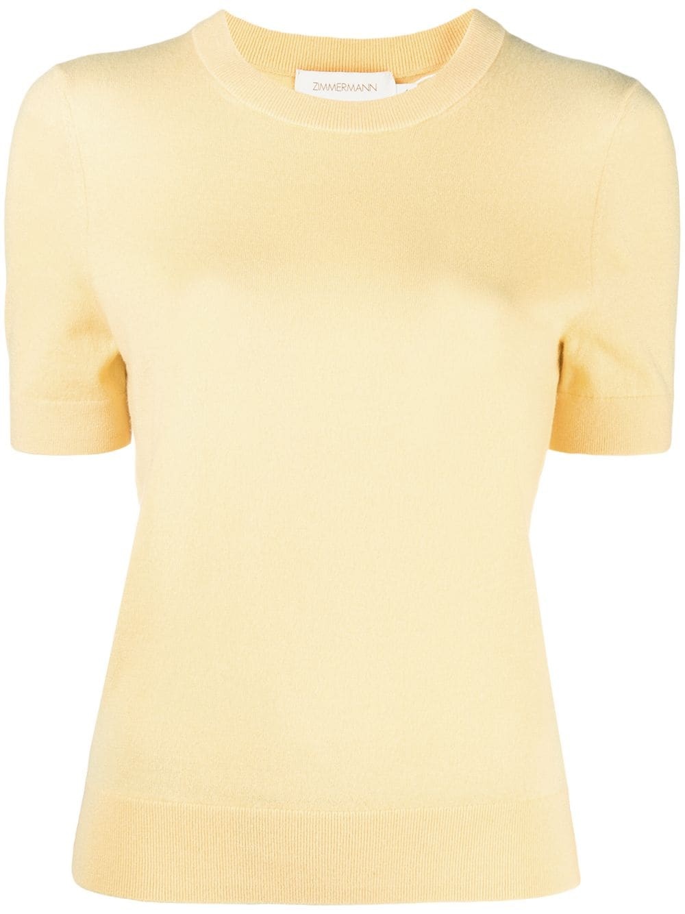 Lovestruck cashmere knitted T-shirt buttercup yellow fine knit ribbed cuffs ribbed hem round neck short sleeves Imported Composition Cashmere 100% SIZE & FIT Model measurements Height 5 ft 11 in(1.8 m) Bust/Chest 32.67 in(83 cm) Hips 36.22 in(92 cm) Waist 24.4 in(62 cm) FittingInformation This piece fits true to size. We recommend you get your regular size Cut for a slim fit Made with a mid-weight fabric Washing instructions Hand Wash