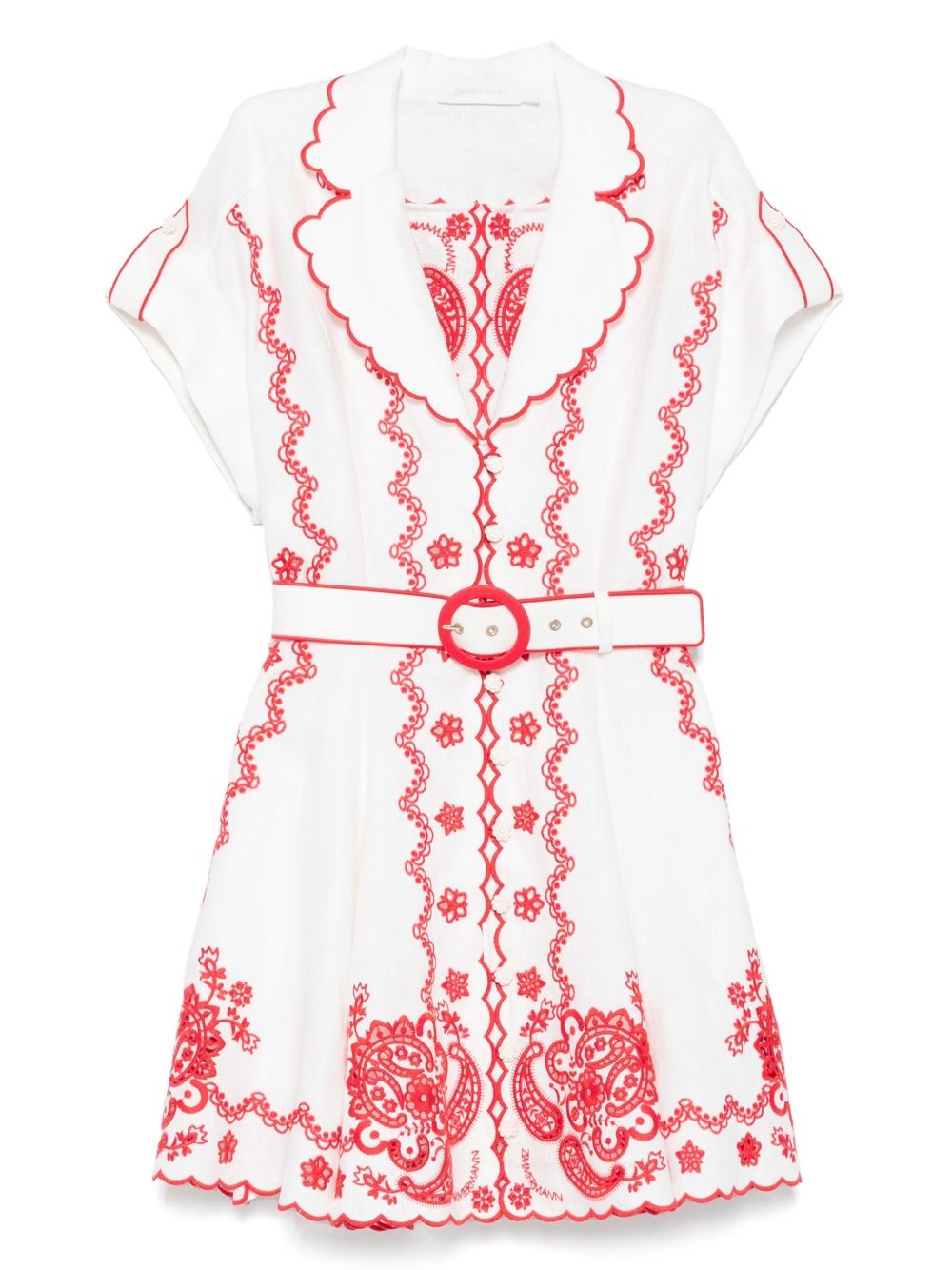 Lucky Embroidered mini dress Highlights - White - Front button fastening - Belted waist - Scallop edge - Buttoned cuffs Imported Composition Recycled Polyester 86%, Elastane 14% SIZE & FIT Model measurements Height 5 ft 10 in(1.78 m) Bust/Chest 31.49 in(80 cm) Hips 37 in(94 cm) Waist 23.62 in(60 cm) FittingInformation Designed to be unstructured, offering a loose fit throughout The internal slip sits just away from the body, offering a close yet comfortable fit Made from a midweight fabric Washing instructions Hand Wash