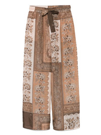Lucky trousers Highlights - Camel brown - Elasticated drawstring waistband - Two diagonal pockets to the sides - Bandana print Imported Composition Outer: Silk 100% Lining: Silk 100% SIZE & FIT Model measurements Height 5 ft 10 in(1.79 m) Bust/Chest 33.07 in(84 cm) Hips 35.82 in(91 cm) Waist 24.01 in(61 cm) FittingInformation Designed with a wide-leg cut, these trousers allow for a close fit at the waist and offer a loose and roomy fit over the leg The elasticated waist allows for a comfortable fit Made from a lightweight non-stretch fabric
