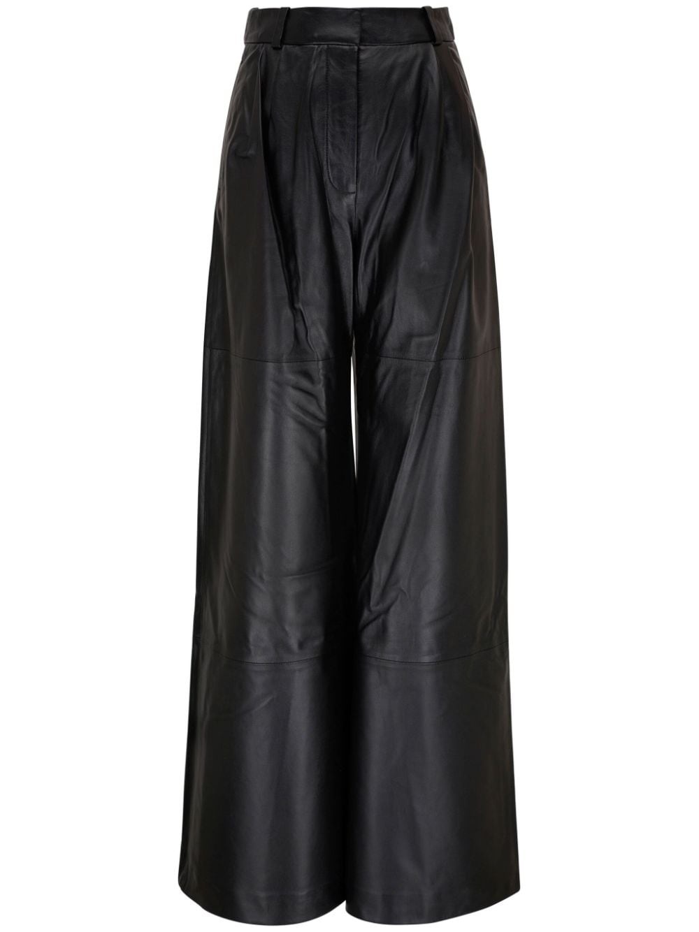 Luminosity wide-leg leather trousers The cornerstone of ZIMMERMANN’s Luminosity collection is effortless silhouettes – a sentiment captured by the fluid, wide-leg cut of these black leather trousers. Highlights - Black - Lambskin - High-waisted - Belt loops - Concealed front fastening - Two side inset pockets - Two rear jetted pockets - Wide leg Made in Italy Composition Lamb Skin 100% Washing instructions Specialist Cleaning