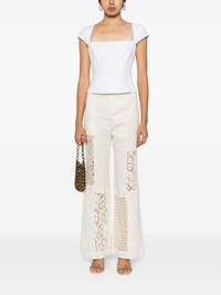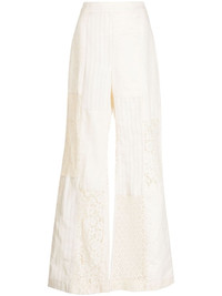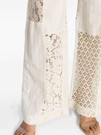 Luminosity wide-leg trousers Highlights - Cream white - Cotton-linen blend - Pinstripe pattern - Lace panels - Concealed fly and button fastening - Wide leg - High-waisted - Two side inset pockets - Straight hem Imported Composition Base: Cotton 55%, Linen/Flax 45% Front: Cotton 82%, Polyamide 18% Back: Cotton 80%, Polyamide 20% Top: Cotton 70%, Polyamide 30% Cotton 100% Outer: Linen/Flax 52%, Silk 48% Body: Linen/Flax 100% SIZE & FIT Model measurements Height 5 ft 10 in(1.77 m) Bust/Chest 31.49 in(80 cm) Hips 35.43 in(90 cm) Waist 25.19 in(64 cm) FittingInformation Designed with a flared hem, these trousers allow for a close fit at the waist with a slim fit over the leg and widening towards the hem Made from a midweight non-stretch fabric This piece fits true to size – take your usual size Washing instructions Dry Clean Only