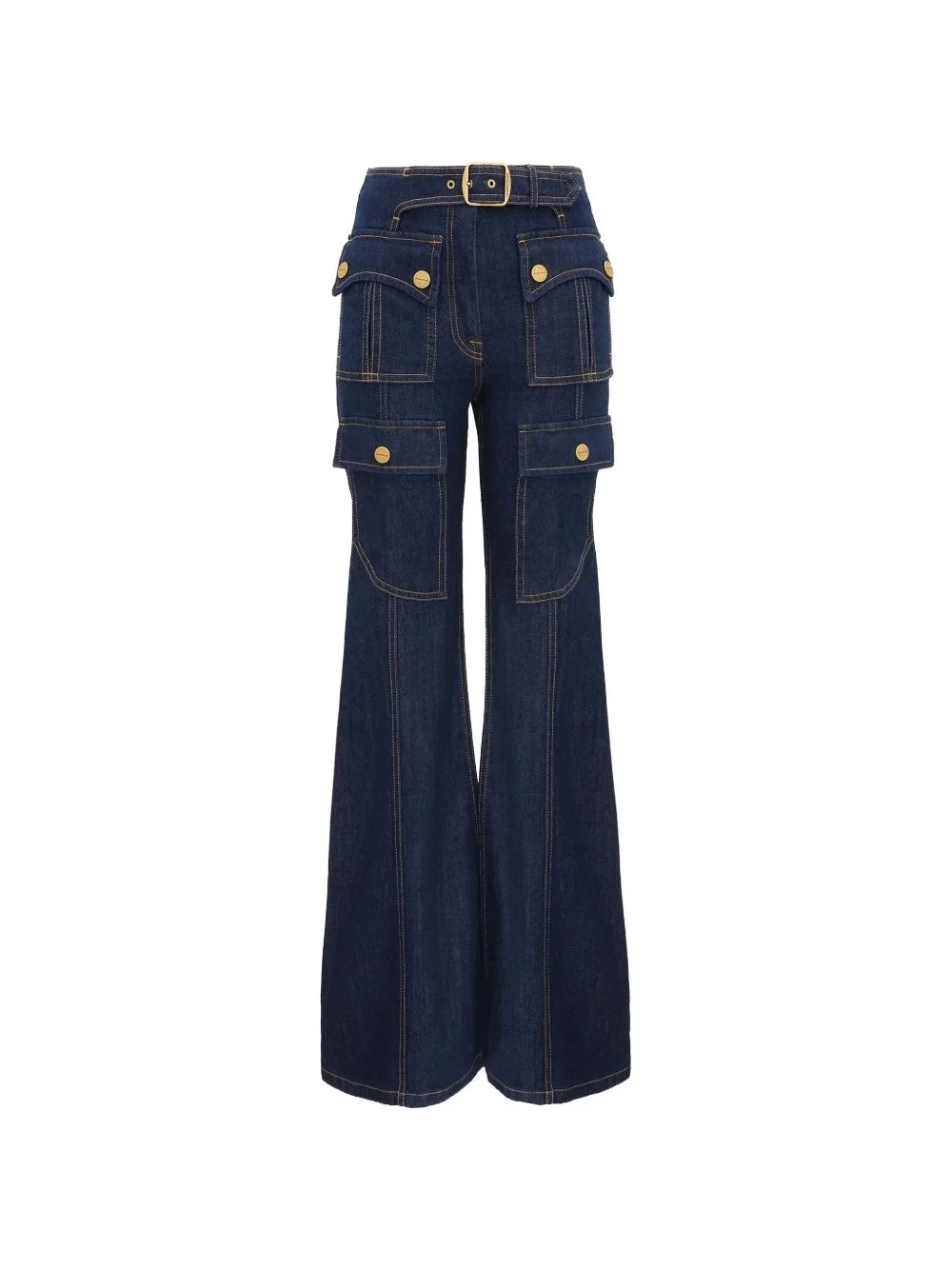 Luna flared jeans Highlights - Blue - Sewn in waist-belt - Gold-tone hardware - Front flap pockets Imported Composition Outer: Cotton 100% Lining: Polyester 86%, Cotton 14% Washing instructions Dry Clean Only
