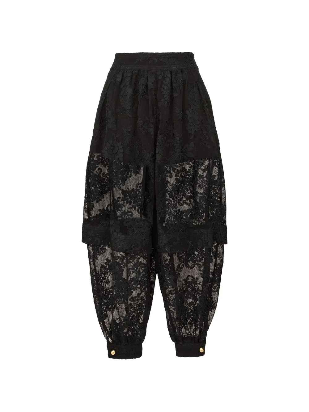 Luna guipure-lace harem pants Highlights - Dark grey - Floral detail - Buttoned cuffs - High-waisted - Elasticated waistband Imported Composition Outer: Polyester 100% Lining: Viscose 100% Washing instructions Dry Clean Only
