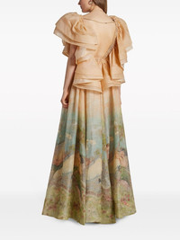 Lyrical Endormies-print silk gown ZIMMERMANN's penchant for bold silhouettes and charming prints is on full display with this Lyrical silk gown. It plays host to the seasonal Endormies print on the skirt and is enhanced with voluminous ruffled shoulders. Highlights - Beige/multicolour - Silk - V-neck - Frilled shoulders - Chain-link detailing - Pleated skirt - A-line - Floor-length Imported Composition Silk 100% Washing instructions Read Manufacturer Guidelines