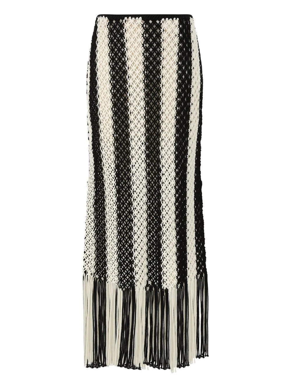 macrame-fabric fringed-hem maxi skirt Highlights - Ivory/black - Striped pattern - Macrame fabric - Fringed hem Imported Composition Cotton 86%, Polyester 14% Washing instructions Dry Clean Only