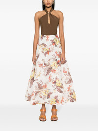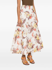 Matchmaker floral-print A-line skirt ZIMMERMANN’s penchant for botanical prints is demonstrated with this Mathcmaker midi skirt– note the faded blooms that saturate its lightweight linen-silk base. The charming prints are complemented by the voluminous A-line silhouette. Highlights - White/multicolour - Linen/silk - A-line - High-waisted - All-over floral print - Calf-length - Straight hem Imported Composition Polyester 100%, Linen/Flax 52%, Silk 48% Lining: Cotton 100% SIZE & FIT Model measurements Height 5 ft 11 in(1.8 m) Bust/Chest 30.7 in(78 cm) Hips 35.03 in(89 cm) Waist 24.4 in(62 cm) Measurement HIPS 55.51 in(141 cm) LENGTH 36.22 in(92 cm) WAIST 27.55 in(70 cm) FittingInformation This midi-length skirt is intended to be worn high on the waist Made from a lightweight non-stretch fabric This piece fits true to size – take your usual size Washing instructions Dry Clean Only