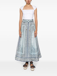 Matchmaker midi skirt Highlights - Light blue - Linen/silk - Organza - Paisley print - High-waisted - Elasticated drawstring waistband - Two side slit pockets - Full skirt - Mid-length Imported Composition Outer: Linen/Flax 52%, Silk 48% Body: Polyester 100% Lining: Cotton 100% SIZE & FIT Model measurements Height 5 ft 10 in(1.77 m) Bust/Chest 31.49 in(80 cm) Hips 35.43 in(90 cm) Waist 25.19 in(64 cm) Measurement LENGTH 37.4 in(95 cm) WAIST 26.77 in(68 cm) FittingInformation This maxi-length skirt is intended to be worn high on the waist The tie fastening gives an adaptable and personalised fit Made from a midweight non-stretch fabric This piece fits true to size – take your usual size Washing instructions Dry Clean Only