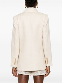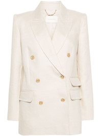 Matchmaker tailored blazer Tailored to a double-breasted silhouette, ZIMMERMANN's Matchmaker blazer is rendered in light beige and is enhanced by notch lapels. The front buttons finish off the design. Highlights - Ecru - Linen/flax - Tailored cut - Decorative stitching - Peak lapels - Chest welt pocket - Long sleeves - Buttoned cuffs - Three side flap pockets - English rear vents - Logo-jacquard lining - Double-breasted button fastening Imported Composition Outer: Linen/Flax 100% Lining: Viscose 75%, Silk 25% SIZE & FIT Model measurements Height 5 ft 10 in(1.78 m) Bust/Chest 31.49 in(80 cm) Hips 37 in(94 cm) Waist 23.62 in(60 cm) FittingInformation Designed for a slim fit that sits just away from the body offering a close yet comfortable fit The internal shoulder pads offer a structured shape Made from a midweight non-stretch fabric This piece fits true to size – take your usual size Washing instructions Dry Clean Only