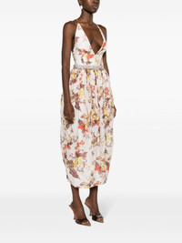 Matchmaker Tulip floral-print midi dress Romantic elegance defines ZIMMERMAN's SS24 collection, as this midi dress demonstrates. It's crafted from linen and silk and drenched in a tropical floral print, while light-catching crystal embellishments along the waist create a striking finish. Highlights - Ivory white/multicolour - Linen-silk blend - Patterned floral print - Crystal embellished trim - Plunging v-neck - Concealed rear zip fastening - Spaghetti straps - Rear criss-cross straps - Open back - Pleated skirt - Central rear vent - Straight hem - Full lining - Mid-length Imported Composition Outer: Polyester 100%, Linen/Flax 52%, Silk 48% Lining: Cotton 100% SIZE & FIT Model measurements Height 5 ft 11 in(1.8 m) Bust/Chest 32.67 in(83 cm) Hips 36.22 in(92 cm) Waist 24.4 in(62 cm) FittingInformation Designed for a close fit at the chest and waist with a loose fit at the hip Made from a midweight non-stretch fabric This piece fits true to size – take your usual size Measurement LENGTH 49.21 in(125 cm) WAIST 25.98 in(66 cm) Washing instructions Dry Clean Only
