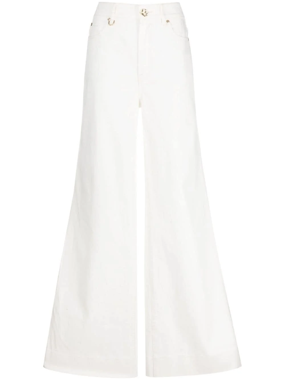 Matchmaker wide-leg jeans ZIMMERMANN's Matchmaker jeans are part of the brand's homonymous Resort 2024 collection, where relaxed silhouettes are key. This pair embodies just that, cut for a roomy wide-leg design. Highlights - Milk white - Cotton - Twill weave - High waist - Contrast stitching - Belt loops - Concealed fly and button fastening - Classic five pockets - Wide leg - Long length Imported Composition Cotton 100% SIZE & FIT Model measurements Height 5 ft 11 in(1.8 m) Bust/Chest 33.07 in(84 cm) Hips 37.4 in(95 cm) Waist 25.19 in(64 cm) Measurement FRONT RISE 11.41 in(29 cm) HIPS 36.22 in(92 cm) FittingInformation Designed with a wide leg cut, these jeans allow for a close fit at the waist and offer a loose and roomy fit over the leg Sturdy and hard-wearing, this denim piece offers no stretch This piece fits true to size – take your usual size Washing instructions Hand Wash
