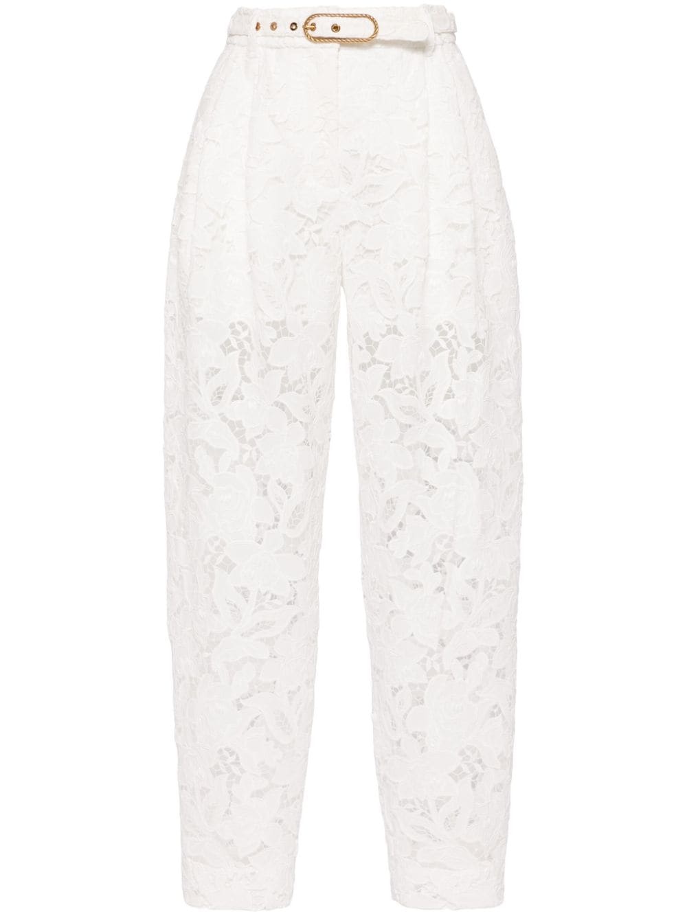 Natura lace tapered trousers Highlights - Ivory white - Floral lace applique - High waist - Belt loops - Belted waist - Concealed front fastening - Two side slit pockets - Tapered leg Imported Composition Polyester 100% SIZE & FIT Model measurements Height 5 ft 10 in(1.78 m) Bust/Chest 32.67 in(83 cm) Hips 37 in(94 cm) Waist 25.59 in(65 cm) FittingInformation Designed for a tapered fit, these trousers allow for a close fit at the waist and a loose unrestricted fit over the leg with a closer fit towards the ankle The belt offers adjustability for fitted preferences Made from a midweight non-stretch fabric This piece fits true to size – take your usual size Washing instructions Dry Clean Only