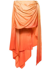 ombre draped midi skirt Highlights - Orange - Silk - Textured finish - Ombre effect - Draped detailing - Knot detailing - Mid-length - Asymmetric hem - Concealed rear hook and zip fastening Made in United States Composition Silk 100% SIZE & FIT Model measurements Height 5 ft 10 in(1.77 m) Bust/Chest 32.28 in(82 cm) Hips 35.03 in(89 cm) Waist 25.19 in(64 cm) FittingInformation This mini-length skirt is intended to be worn just below the waist Made from a midweight non-stretch fabric This piece fits true to size – take your usual size Washing instructions Dry Clean Only