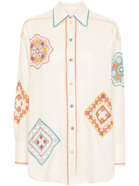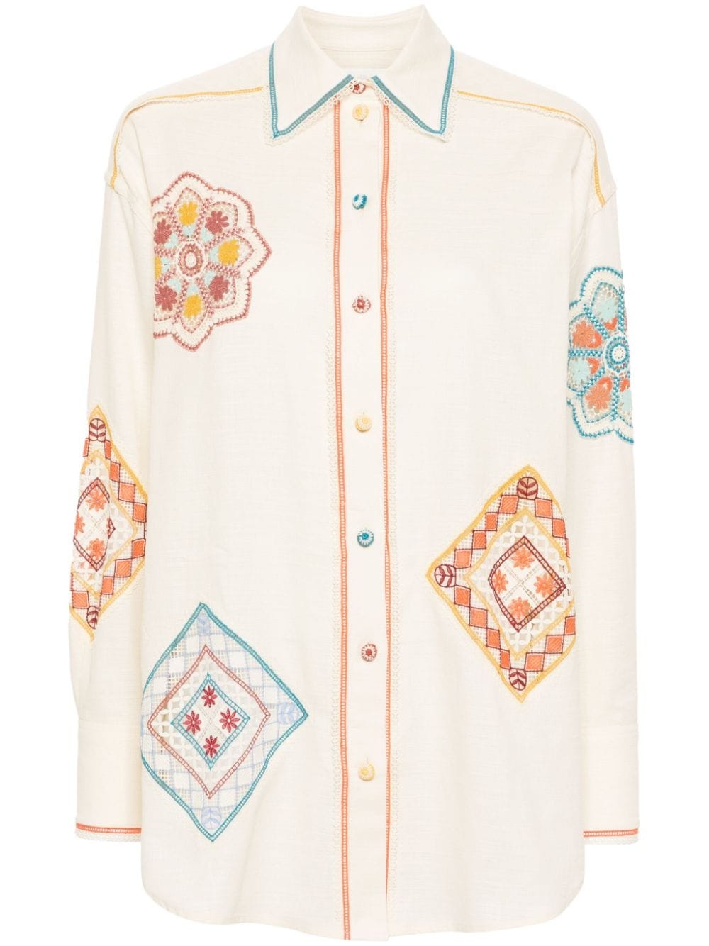 Ottie crochet-trim shirt Highlights - Cream white - Cotton - Crochet trim - Classic collar - Long sleeves - Buttoned cuffs - Curved hem - Front button fastening Imported Composition Polyester 100%, Cotton 100% SIZE & FIT Model measurements Height 5 ft 10 in(1.77 m) Bust/Chest 33.07 in(84 cm) Hips 37 in(94 cm) Waist 24.8 in(63 cm) FittingInformation Designed to be unstructured, offering a loose fit throughout Made from a midweight non-stretch fabric This piece fits true to size – take your usual size Washing instructions Dry Clean Only
