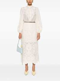 Ottie embroidered midi skirt Highlights - Cream white - Ramie/linen - Floral embroidery - Belt loops - Detachable waist belt - Side slits - Dart detailing - Partial lining - Scallop hem - Concealed rear zip fastening Imported Composition Outer: Ramie 100%, Linen/Flax 100% Lining: Cotton 100% SIZE & FIT Model measurements Height 5 ft 10 in(1.78 m) Bust/Chest 33.07 in(84 cm) Hips 36.61 in(93 cm) Waist 24.8 in(63 cm) Measurement HIPS 37 in(94 cm) LENGTH 35.43 in(90 cm) WAIST 26.77 in(68 cm) FittingInformation This midi-length skirt is intended to be worn high on the waist Made from a midweight non-stretch fabric This piece fits true to size – take your usual size Washing instructions Dry Clean Only