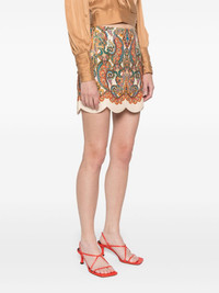 Ottie Scallop mini skirt Highlights - Beige/multicolour - Linen/flax - Multi paisley print - Two side inset pockets - Thigh-length - Cotton lining - Scallop hem - Rear zip fastening Imported Composition Outer: Linen/Flax 100%, Polyester 100% Lining: Cotton 100% SIZE & FIT Measurement HIPS 40.15 in(102 cm) LENGTH 16.14 in(41 cm) WAIST 31.49 in(80 cm) Washing instructions Dry Clean Only