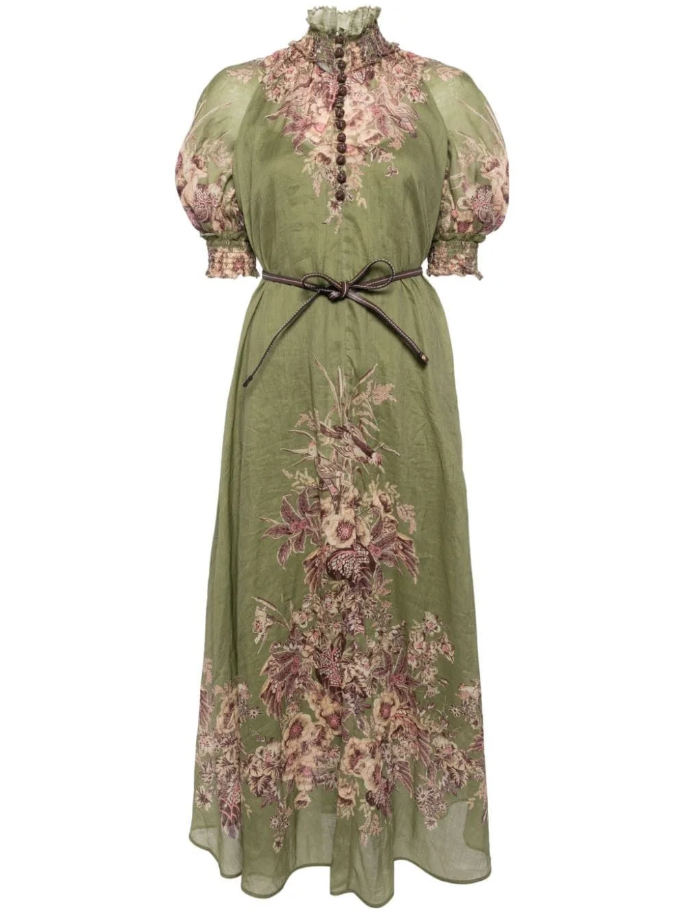 Ottie Swing maxi dress Highlights - Khaki - Ramie - All-over floral print - High neck - Short puff sleeves - Shirred panel - Detachable waist belt - Pleat detailing - Flared hem - Detachable slip dress - Short front button fastening Imported Composition Ramie 100% SIZE & FIT Model measurements Height 5 ft 10 in(1.77 m) Bust/Chest 31.49 in(80 cm) Hips 35.43 in(90 cm) Waist 25.19 in(64 cm) Measurement SLEEVE LENGTH 17.71 in(45 cm) HIPS 40.15 in(102 cm) LENGTH 54.72 in(139 cm) WAIST 31.49 in(80 cm)