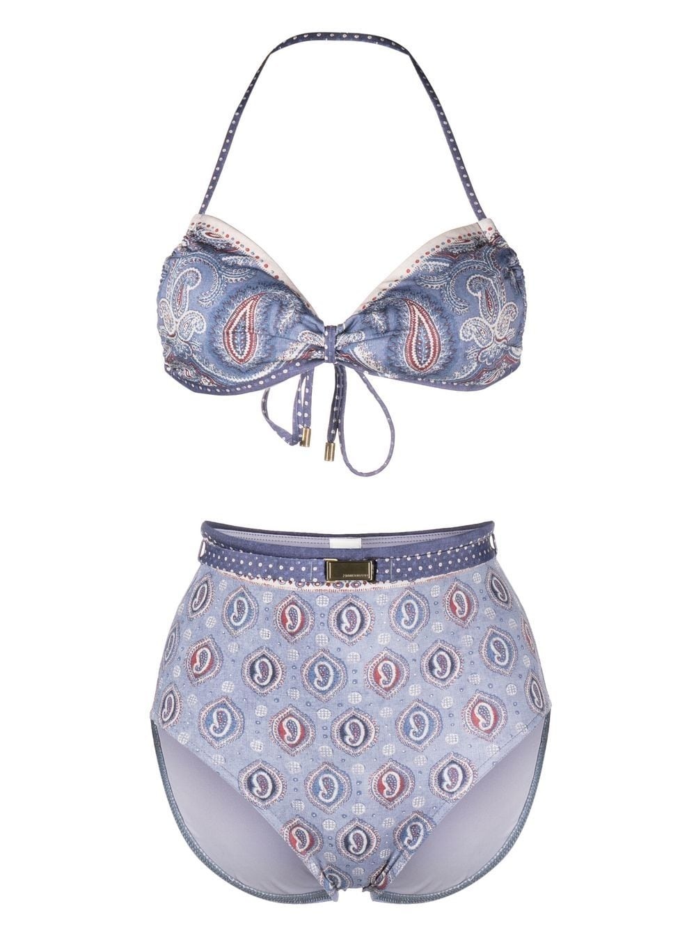 paisley-print halterneck bikini light blue stretch-design paisley print halterneck tie fastening rear tie fastening high-waisted bottoms Be mindful to try on swimwear over your own garments. Imported Composition Outer: Polyamide 80%, Elastane 20% Lining: Polyamide 92%, Elastane 8% Washing instructions Hand Wash